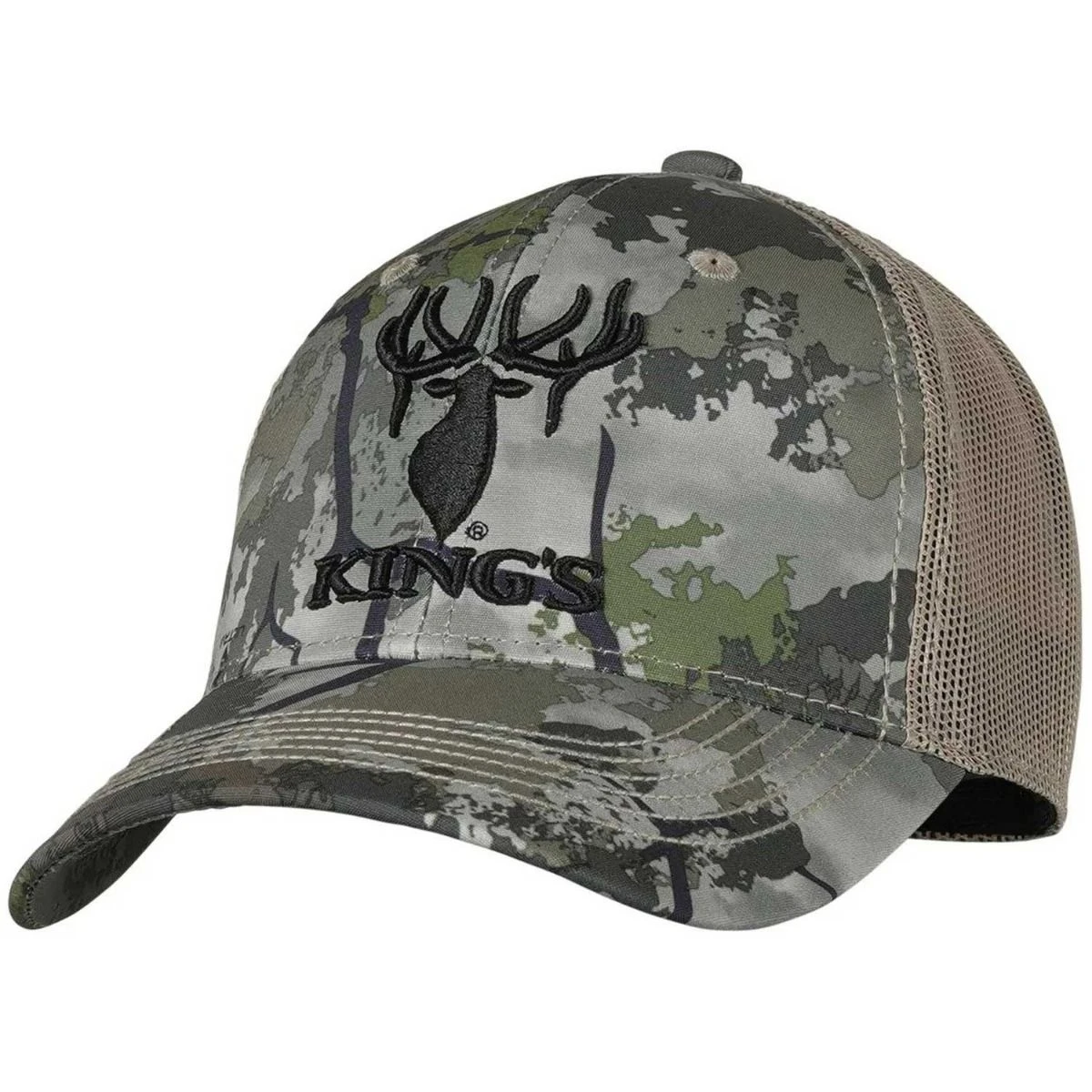 Low-profile snapback with camo front panel and mesh back coverage. Heavy duty stitching and large raised embroidered King’s logo.