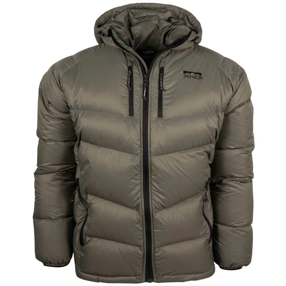 King’s Camo also added the most durable lightweight windproof nylon outer fabric along with a DWR finish to protect you ever more when the conditions are extreme. This jacket packs into its left side pocket for easy storage. It has drawstring adjustments in the waist and hood to lock in heat my efficiently. Finished with XKG and King’s logoing on the pull tabs, chest and shoulders. This jacket will thrive during long glassing sessions, testing days in the tree stand, and sleeping or lounging around camp.