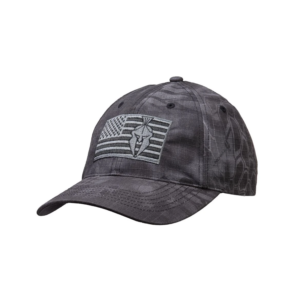 Full Kryptek Highlander Camouflage with tonal American flag in the front.