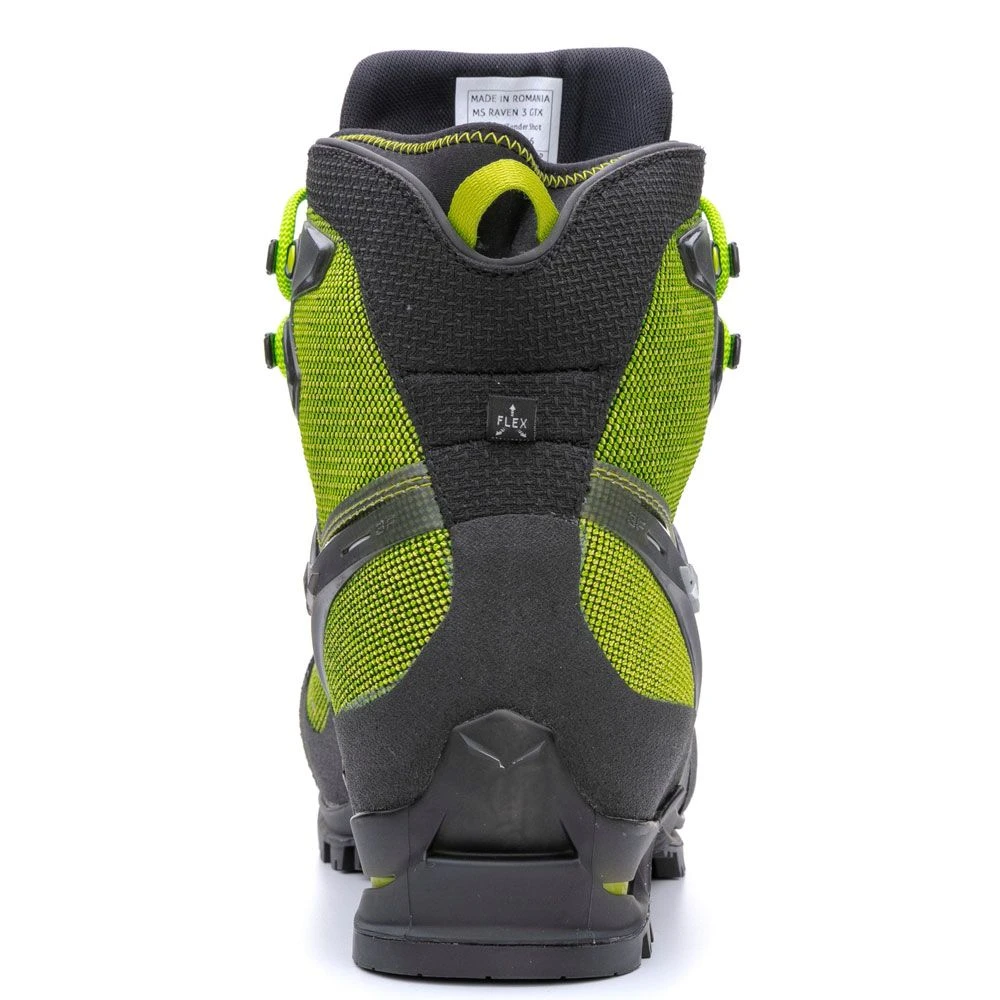 Designed to make light work of tough alpine terrain in variable conditions. Salewa’s Raven 3 GORE-TEX® men’s mountaineering boot has an abrasion-resistant fabric upper to offer exceptional stability, durability and performance, all in a lightweight construction. Inside, the durably waterproof and breathable GORE-TEX® Performance Comfort lining delivers optimized climate comfort even in changing weather conditions. Outside, the protective rubber rand and external TPU toe cap increase comfort and protection in the long run, outperforming conventional constructions. The Vibram® WrapThread Combi (WTC) sole offers optimal grip, traction and surefootedness over rough, steep terrain without compromising on comfort, while the smooth climbing zone at the toe promotes precise footwork. At the heart of the boot, the stiff nylon carbon loaded fibreglass insole ensures good crampon compatibility, while the Bilight Midsole is designed with material properties and an ergonomic shape to provide superior shock absorption for the lifetime of the shoe. Flexibility, heel support and a precise blister-free fit come courtesy of the SALEWA 3F System, 3D Lacing allows you to fine-tune at the toes and midfoot, and the Multi Fit Footbed Plus (MFF+) with interchangeable layers gives you greater customisation for your feet.